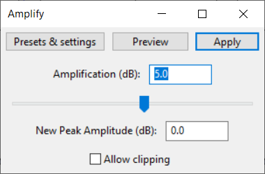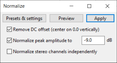 If you want to reduce volume, use this. Play around with the setting. Again: do not use the gain sliders. The great thing is (as with most effects) you can use it on parts of an audiofile. Just select the part you want to normalize or amplify.