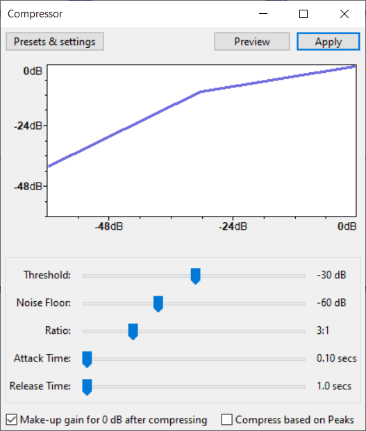 This will top off peaks, and boost your voice tracks to a maximum for much louder and clearer sound.