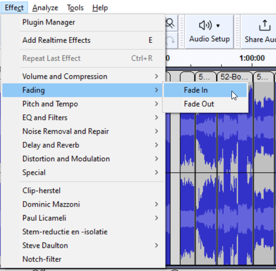 Note: For all of the effects to work you first need to select (part) of a track or audiofile.