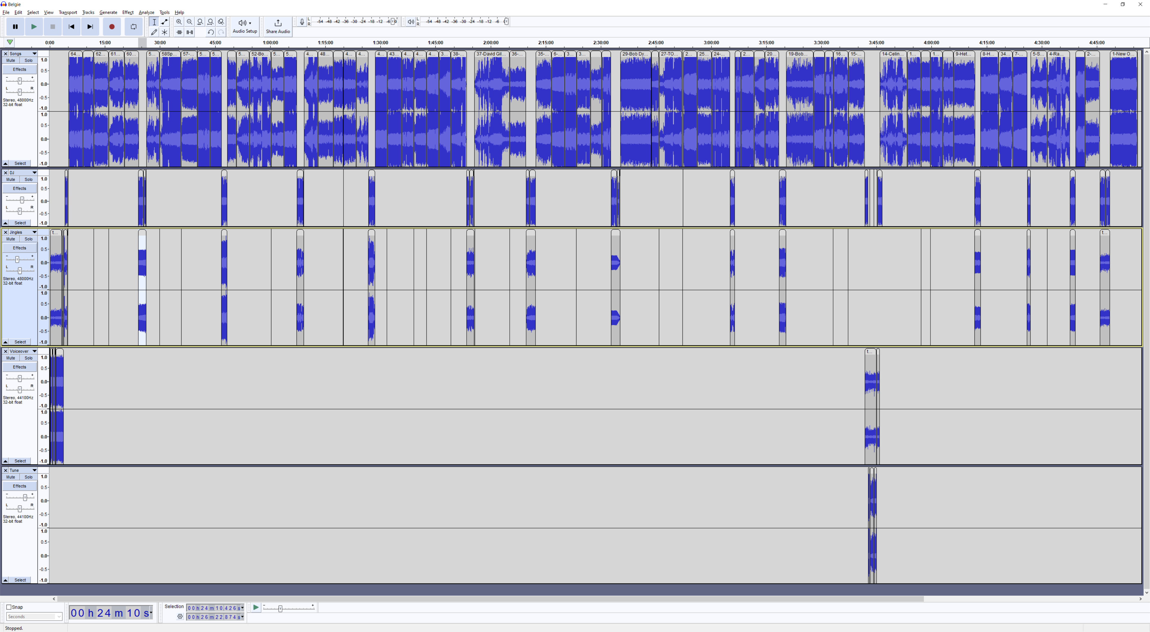 The finished project, it has 5 tracks with multiple audiofiles per track