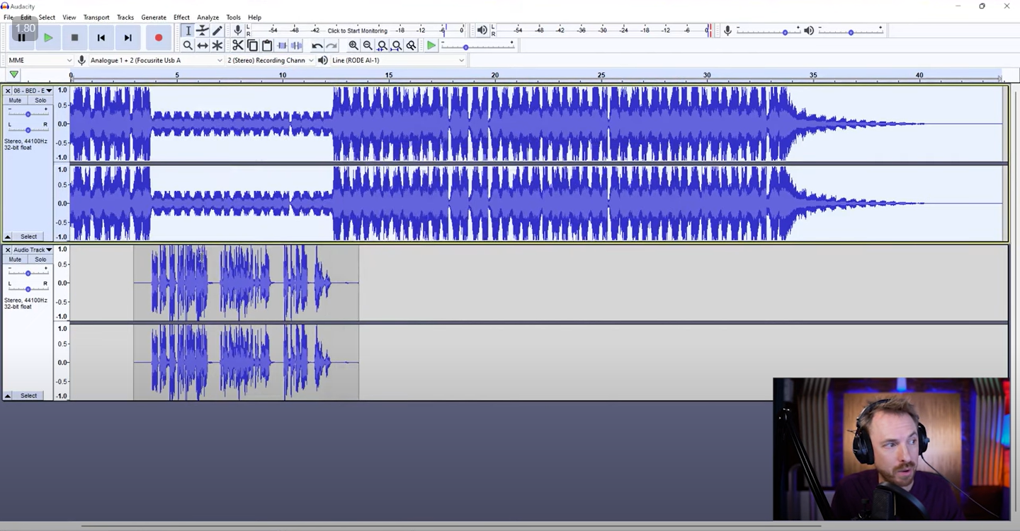 - Have a bit of backgroud music (jingles/tunes) oversomeone talking: so align or layer tracks.