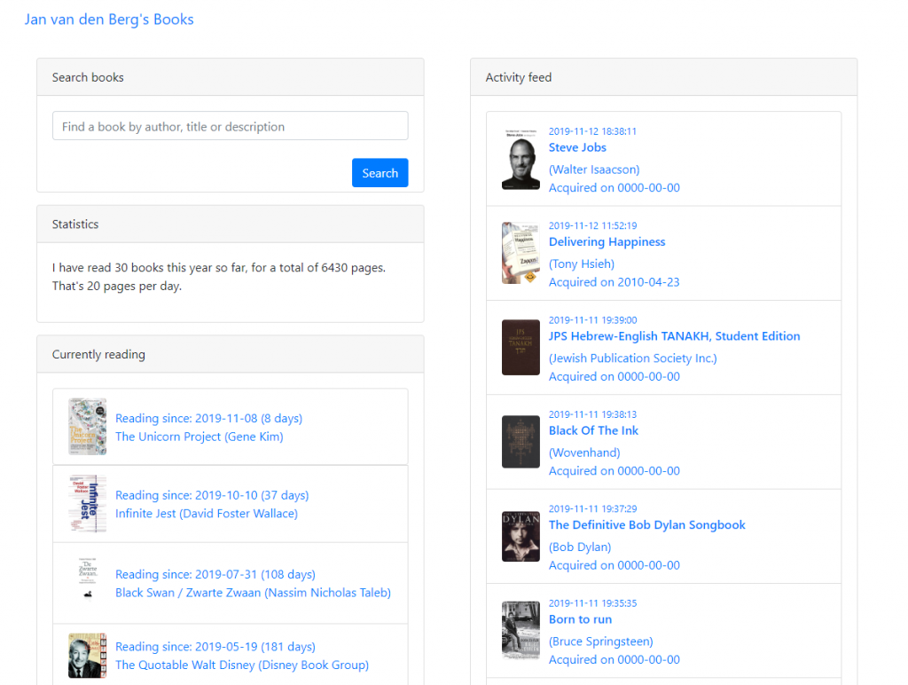 But when I came across https://books.hansdezwart.nl/ I knew this was what I was looking for! So I emailed Hans. He was very kind in explaining his application was self-coded and not open-source, but he did provide some pointers. Thanks Hans! So with those tips I built my own application (front and back) from scratch. And I decided to pass the knowledge on, with this blog.