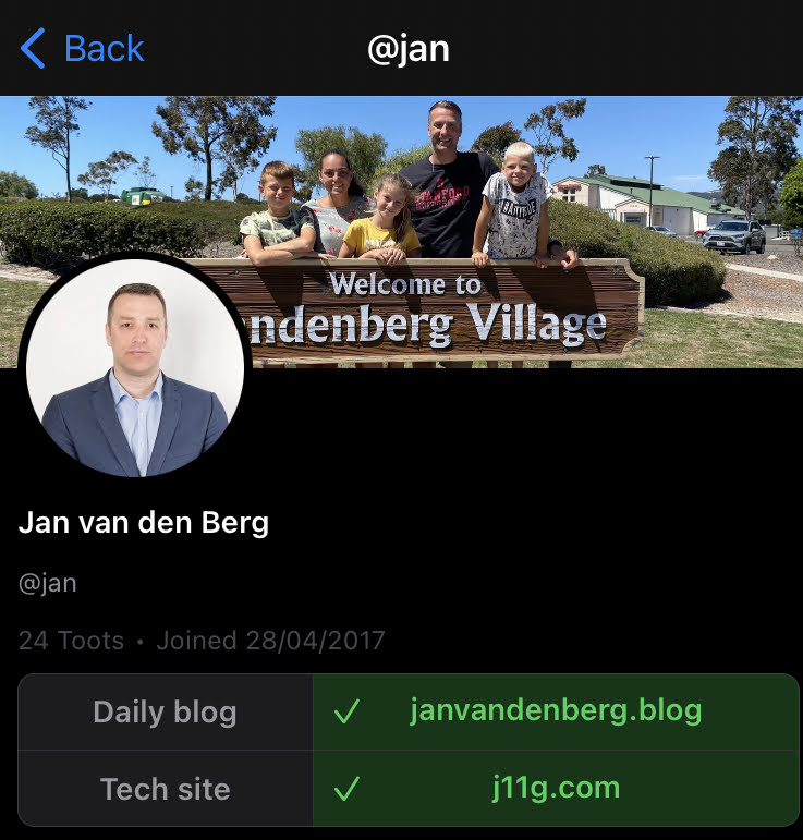 Now you just have to wait for your Mastodon instance to check your links. This happens periodically (I would say daily?). But I notice you can also trigger this check by (making a change and) saving your Mastodon profile.