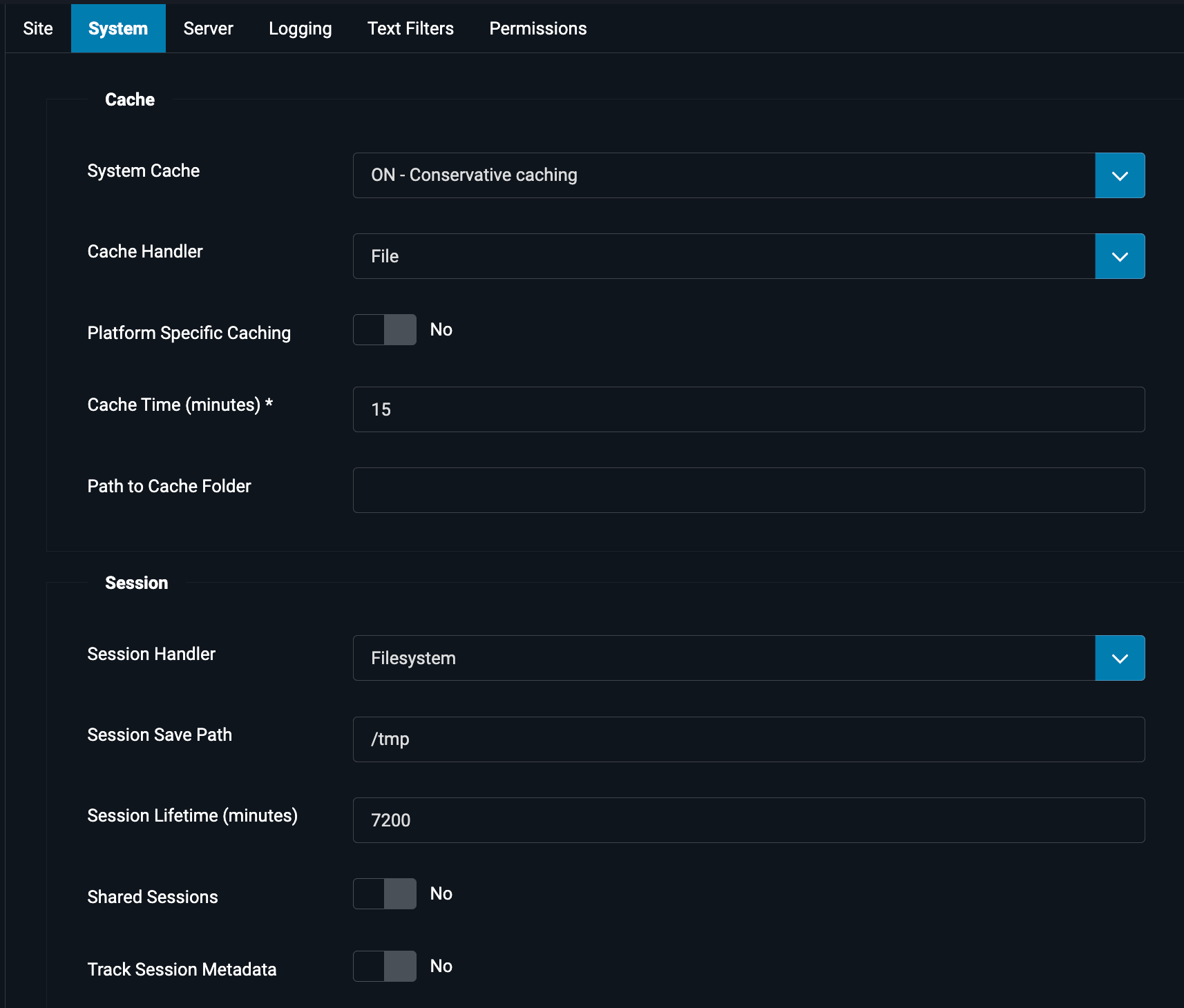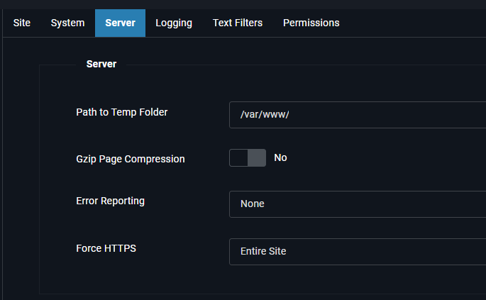 Joomla specific settings