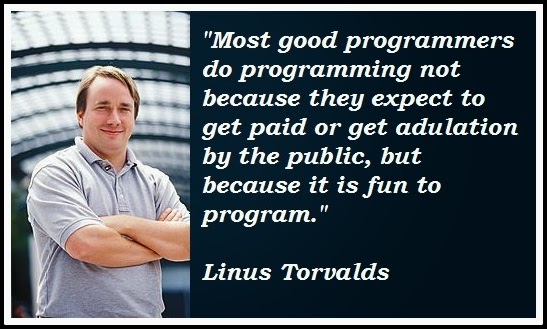 The title of the book is 'Just for Fun'. And it is written with room for jokes and lighthearted thoughts. But there is also plenty of serious thought on ideals and pragmatism. But fun is the general theme throughout Linus' life and the development of Linux. The fun that you get from following your curiosity, working hard on making it happen, and caring about what you do. The pragmatic approach of Linus to everything he does seems to create a sense of flowand he follows that flow and has fun with it. This is also backed by how an enormous project like the Linux kernel, which is the biggest software project in the world, is managed. The loose structure that dictates the development comes from flow.