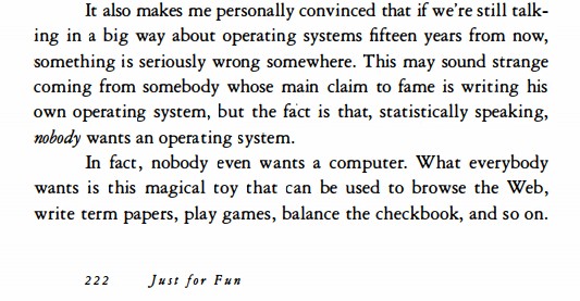 - Even though he famously fell out with professor Tanenbaum, I love that he still states Tanenbaums' book Operating Systems Design and Implementation as the book that changed his life.