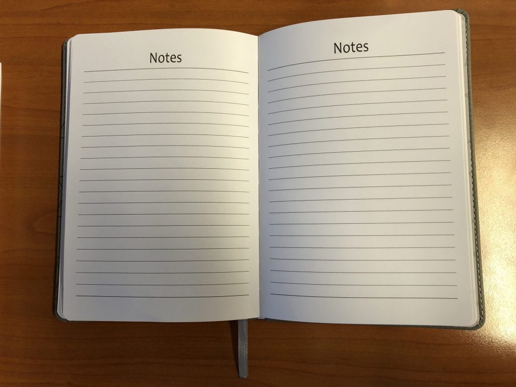 - The above only works if there is also room for notes. I tend to take a few notes specific to a day (usually short) and the really important stuff I write down in one place (i.e. the blank left page, or in the notes section). Things I want to return to often.