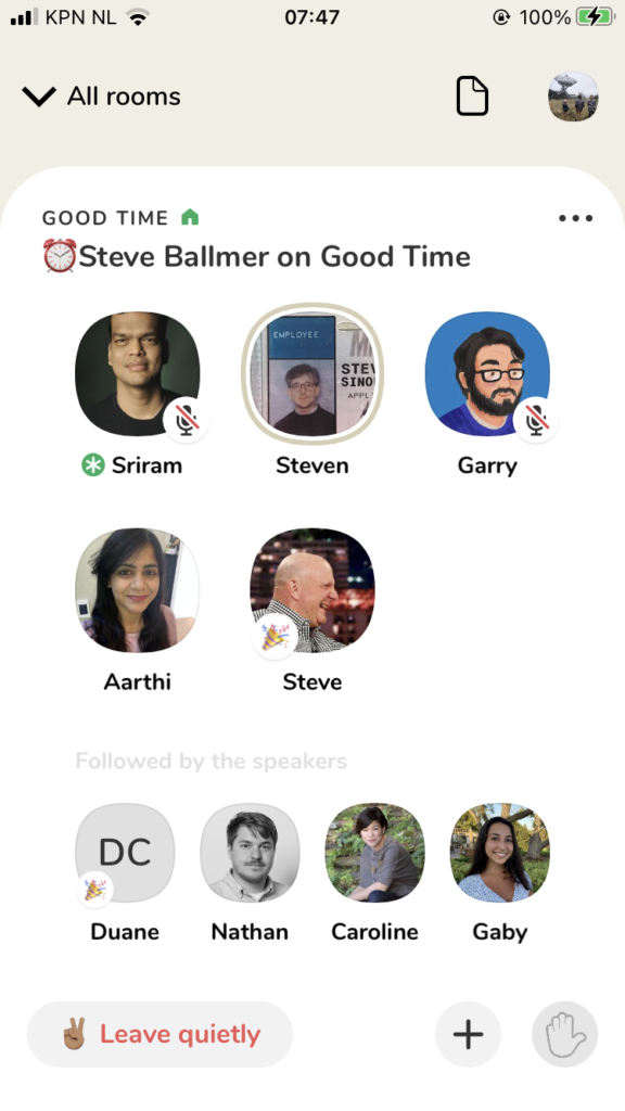 This all boils down to the lowest denominator of participation of any social app out there and the result is a very real experience. So real that it hardly makes sense for people to get 'verified' (blue checkmarks) you know right away if the person talking is who they say they are. I was listening to a room with Steve Ballmer, and trust me, that was Steve Ballmer.